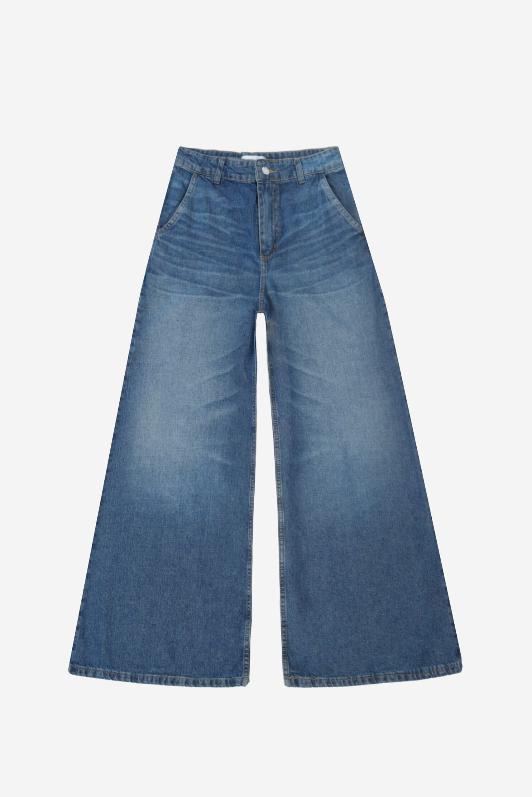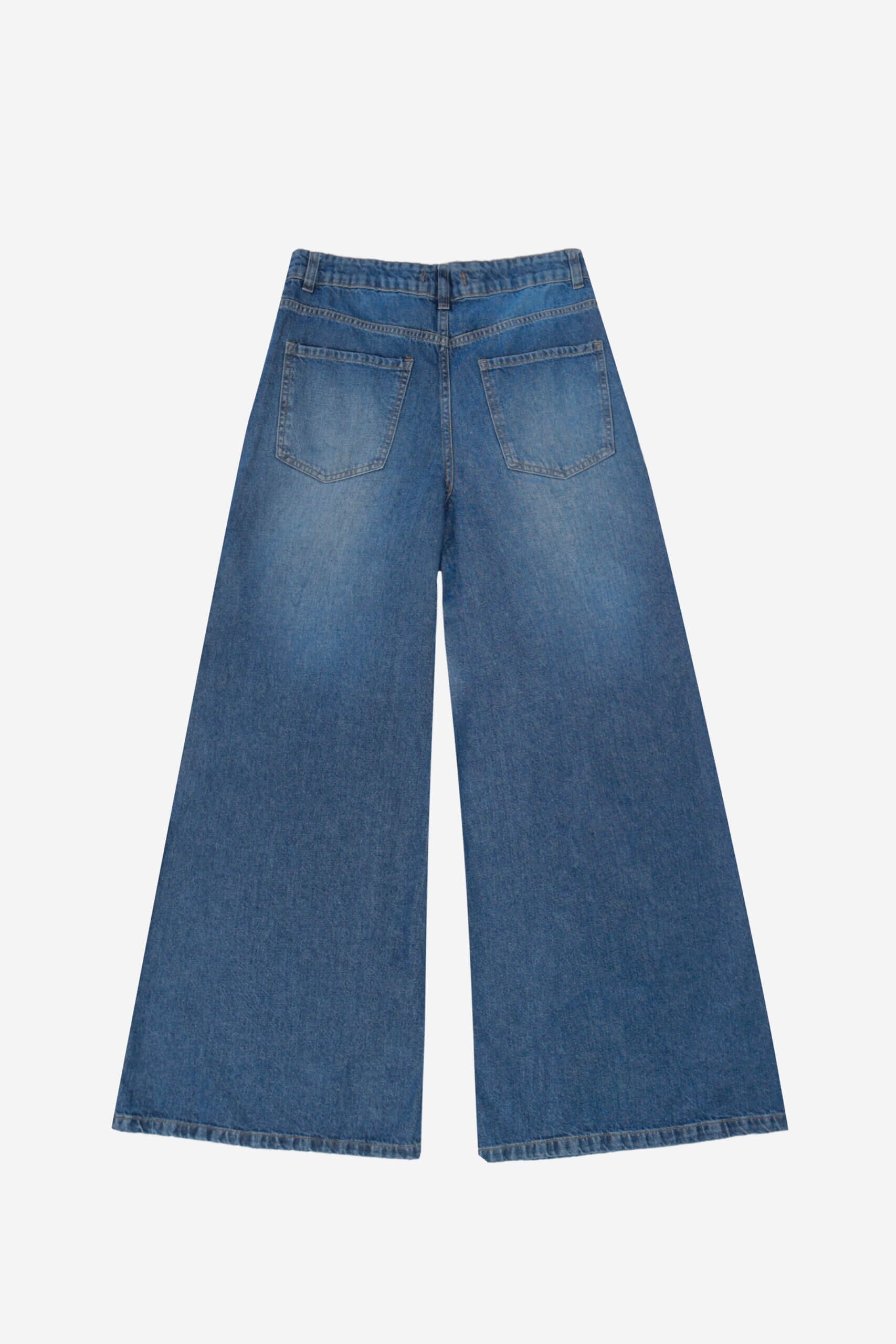 Wide leg loose fit rígido tiro medio, con bolsillos chinos y ruedo común
