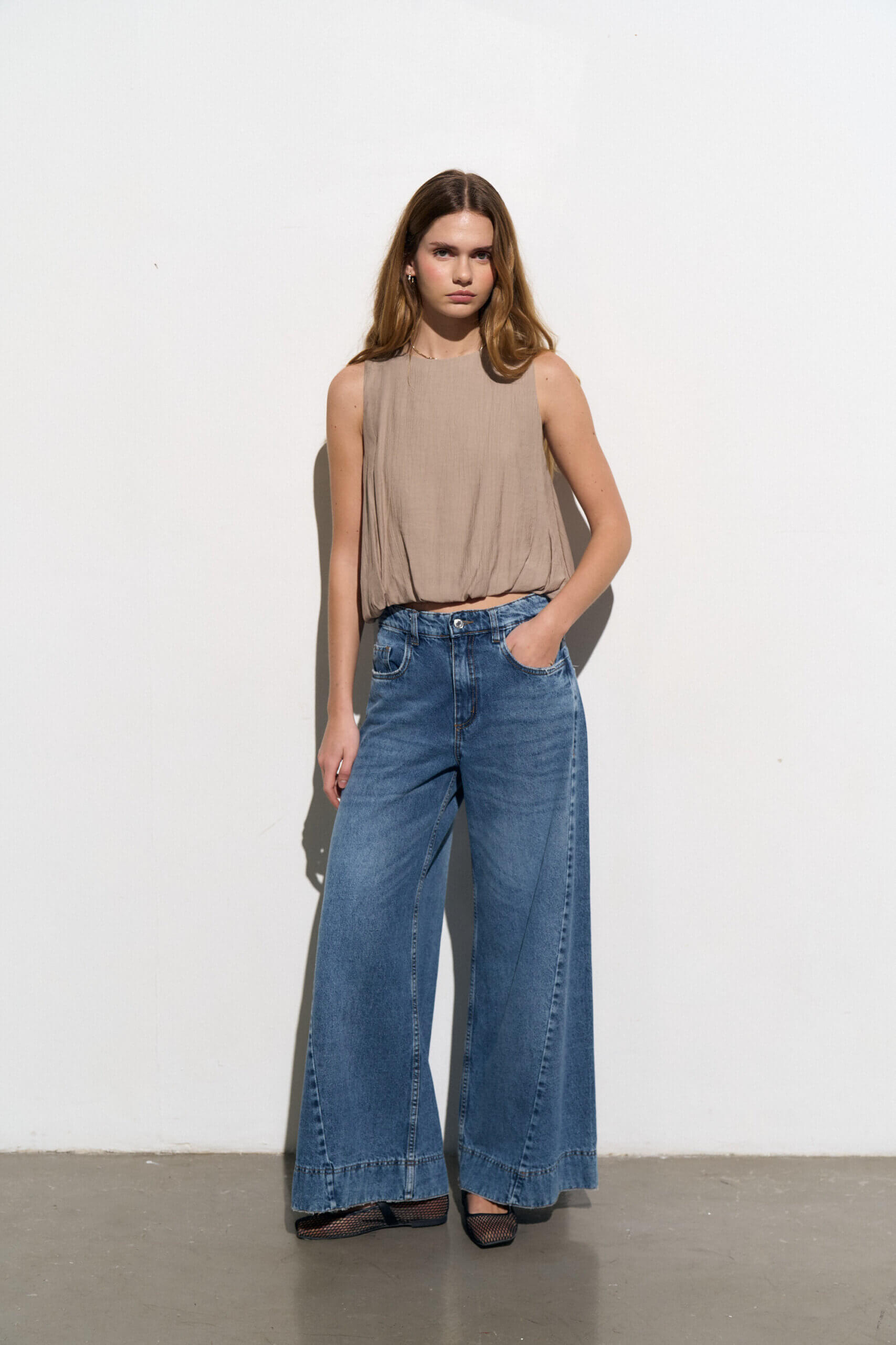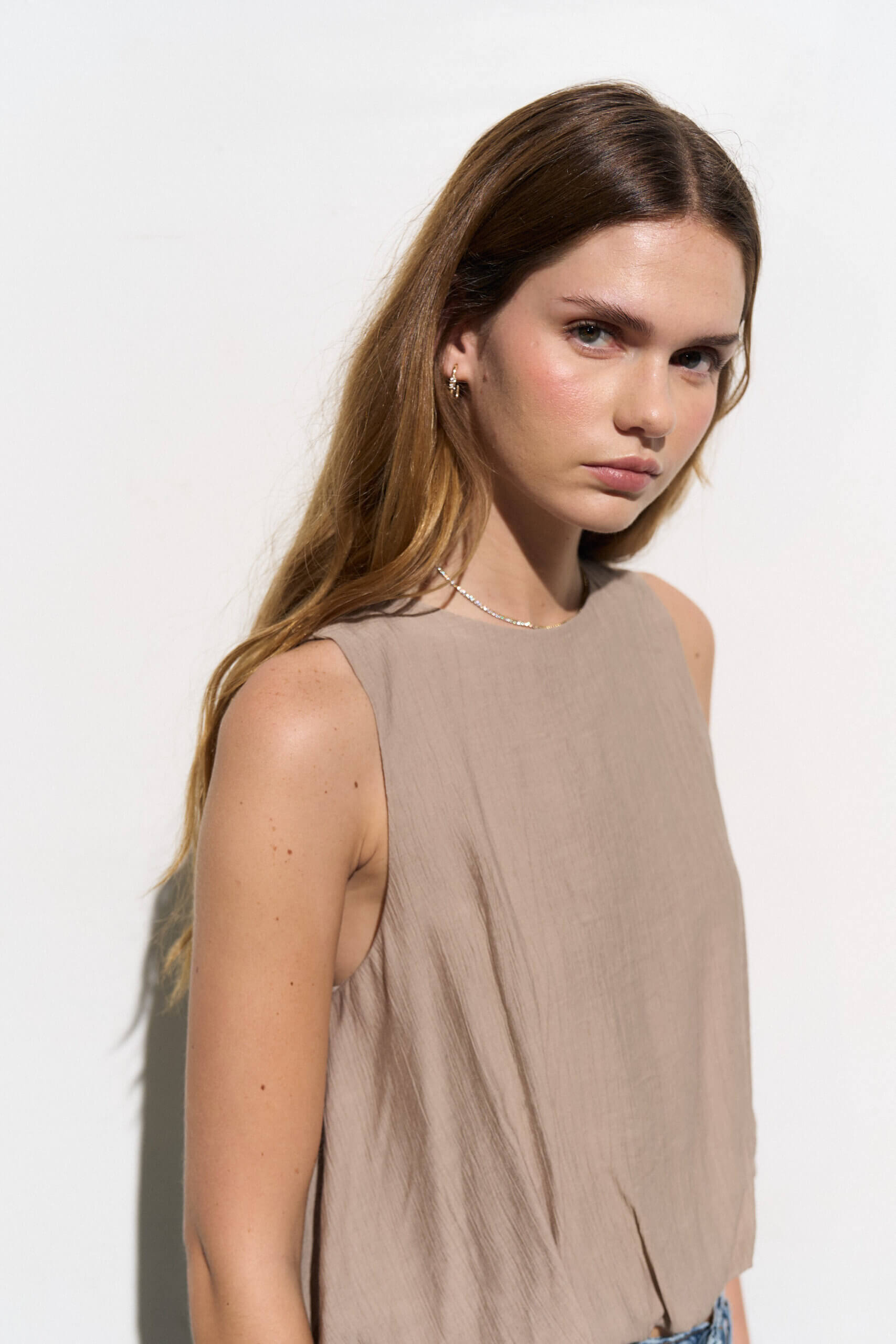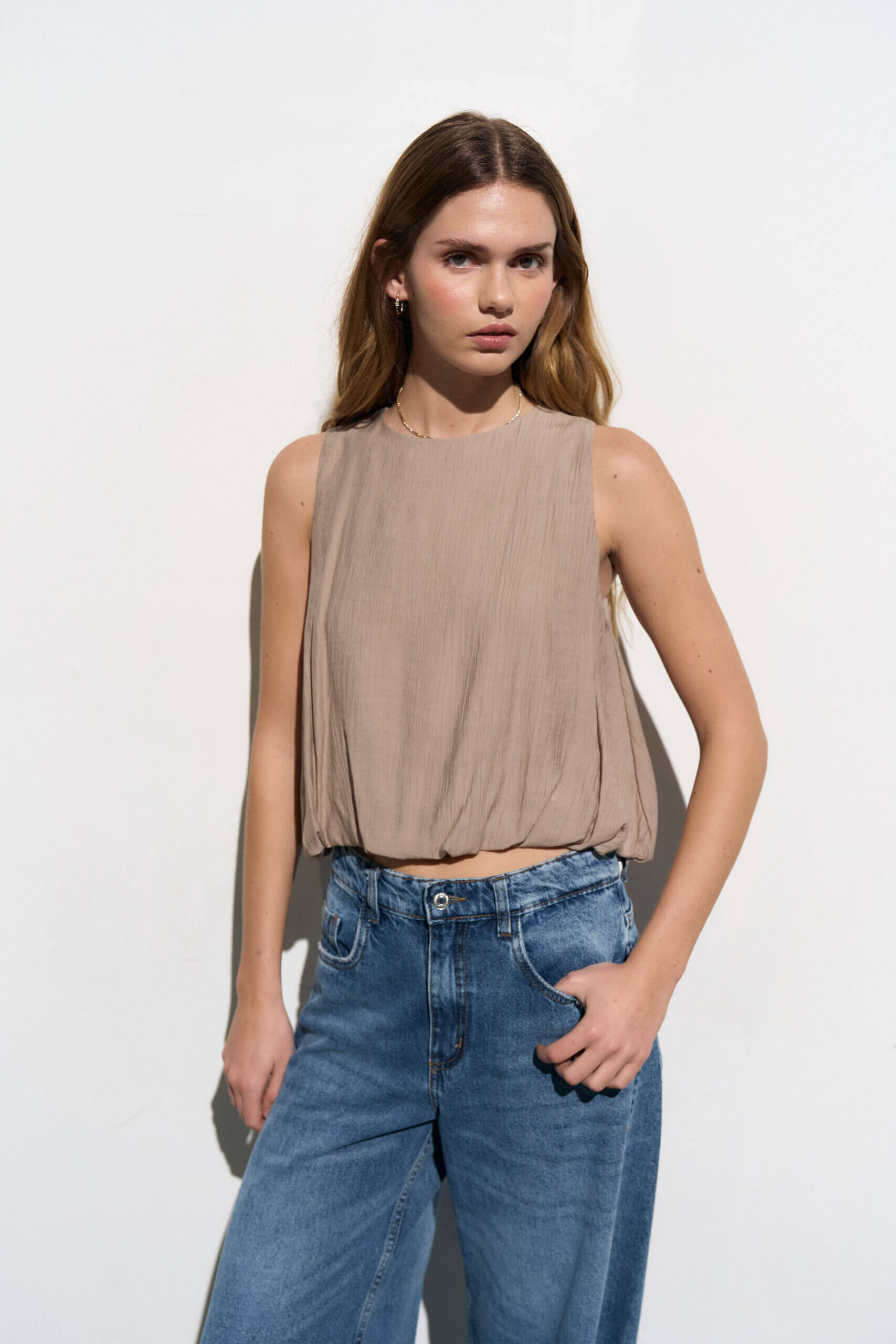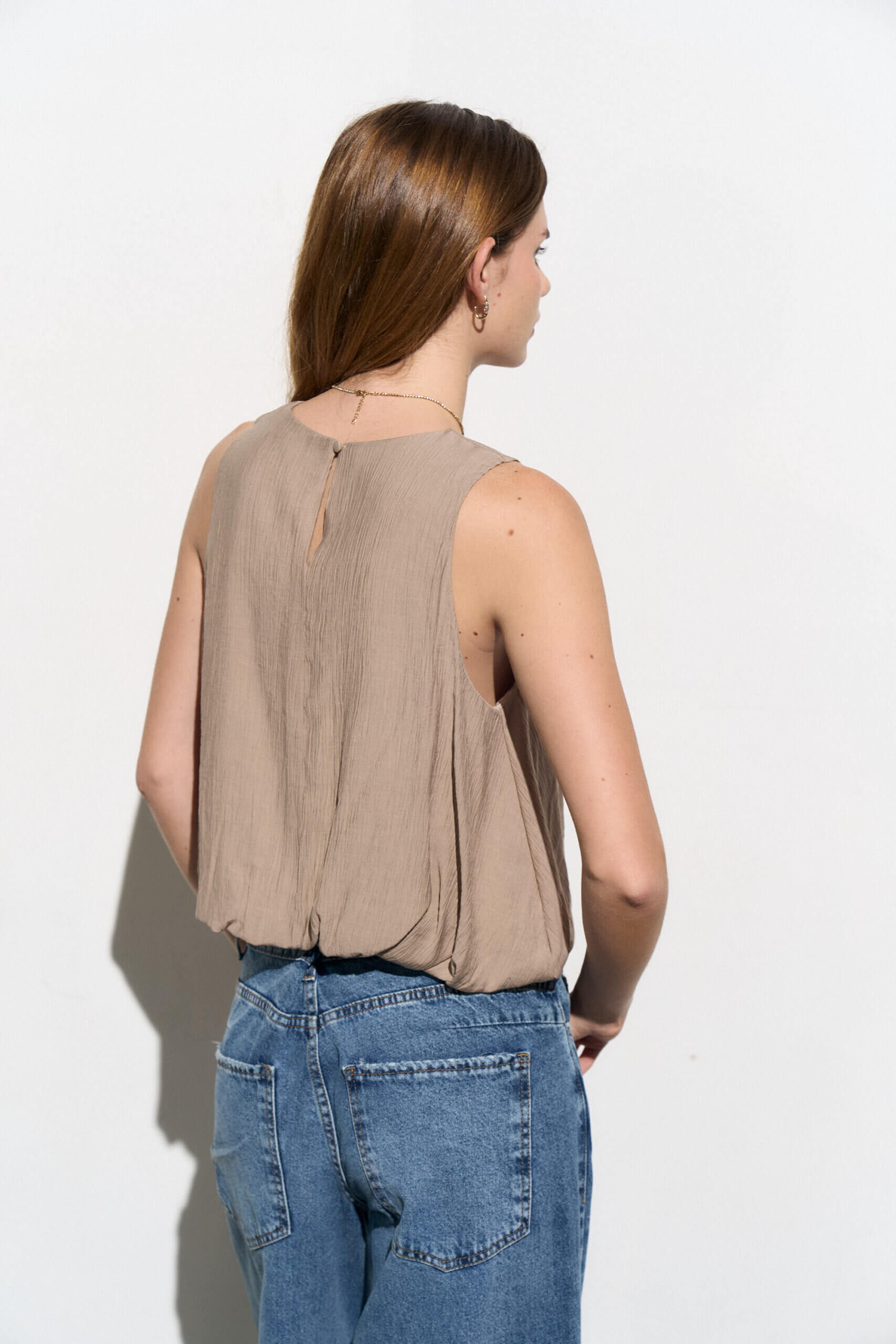 Musculosa balloon escote redondo y manga sisa con boton en espalda.