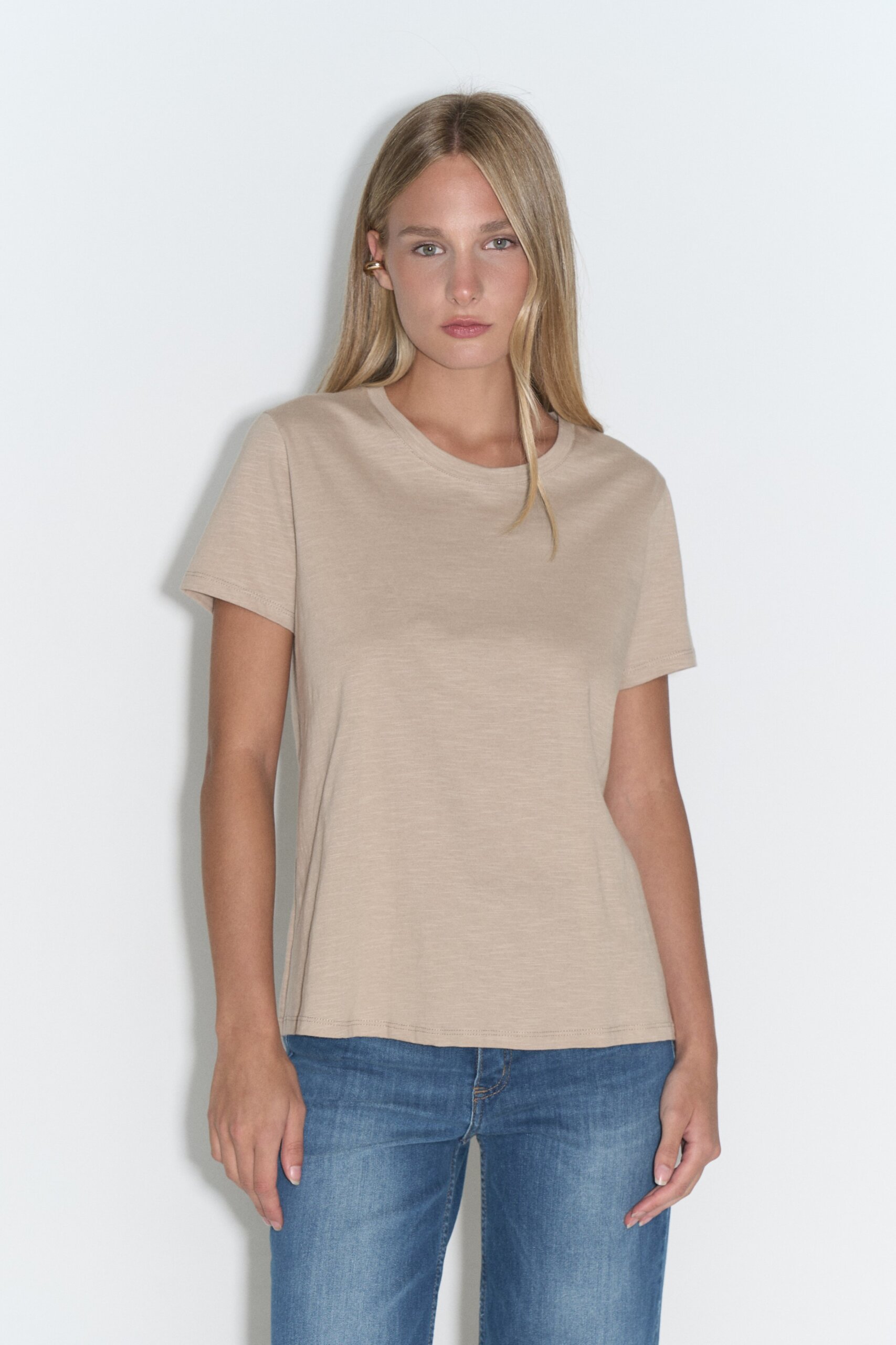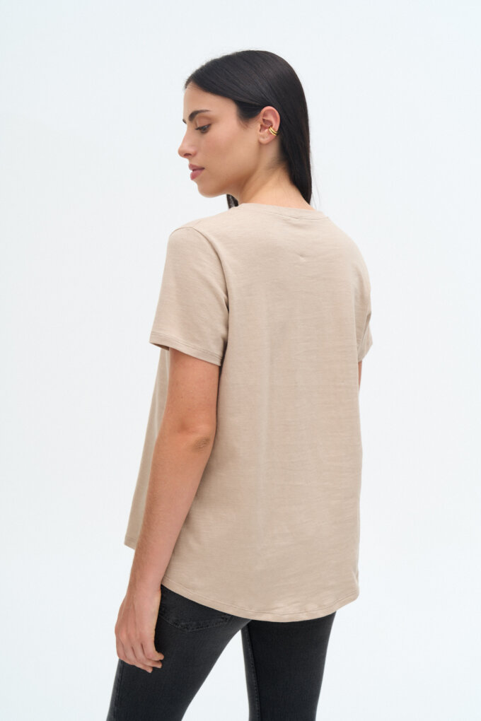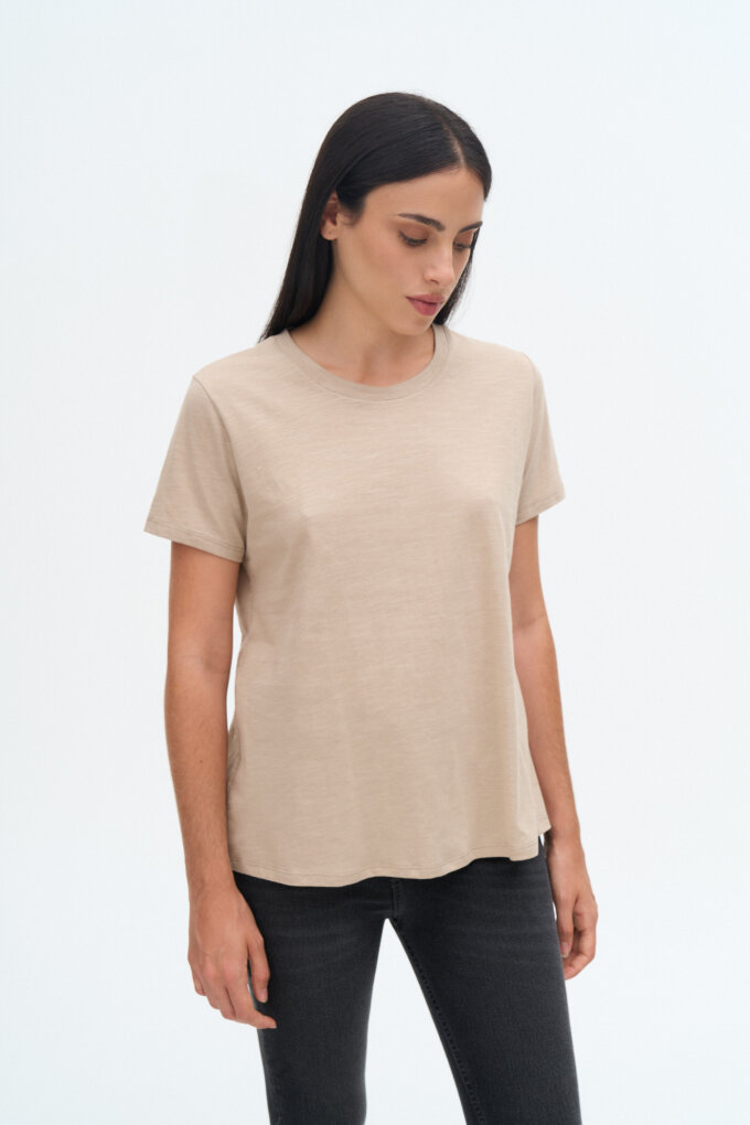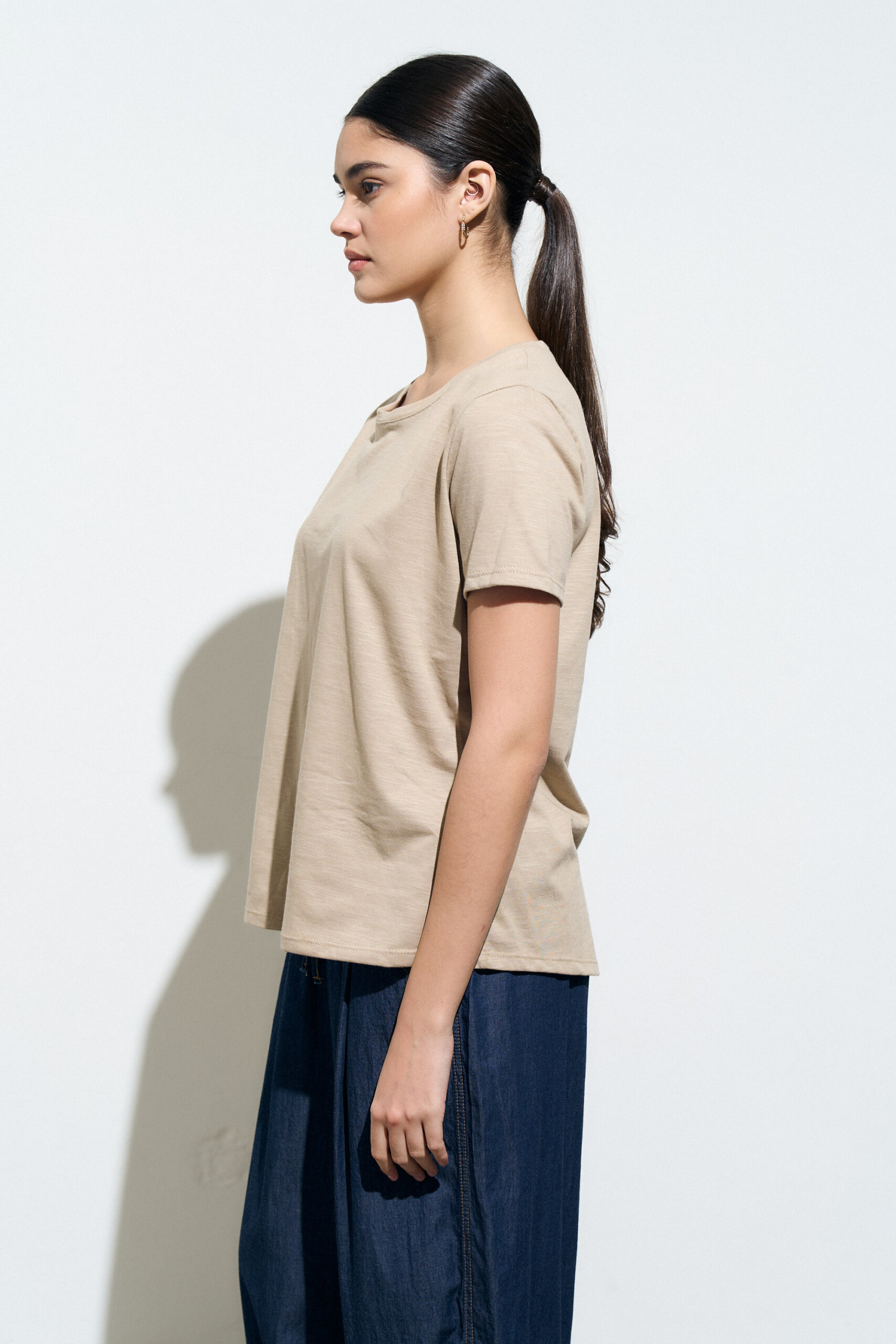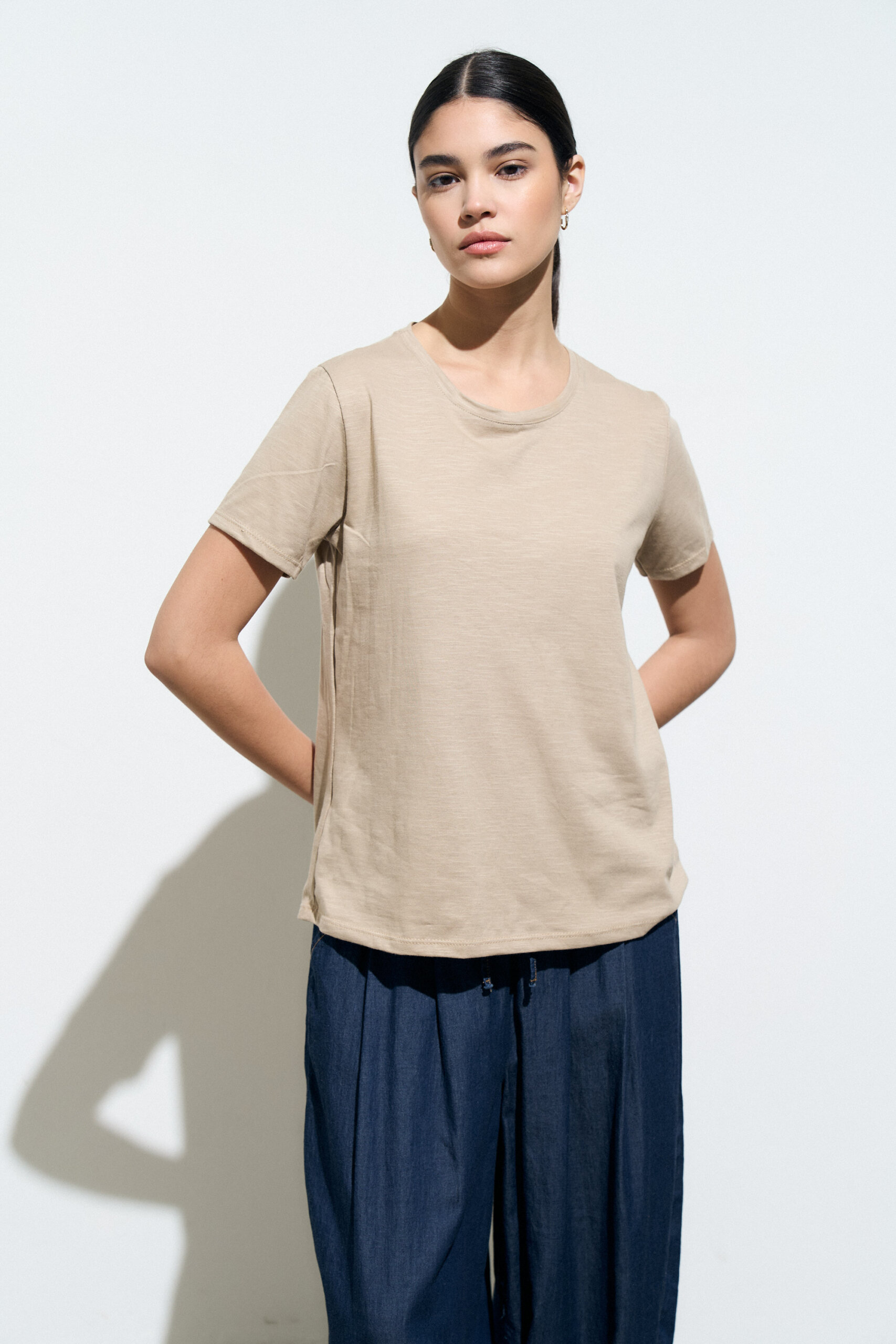 Remera básica de jersey flamé con escote redondo y mangas cortas.