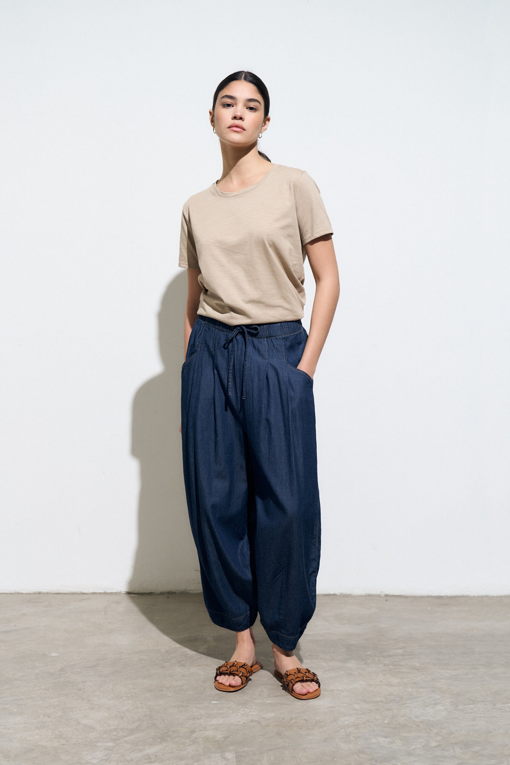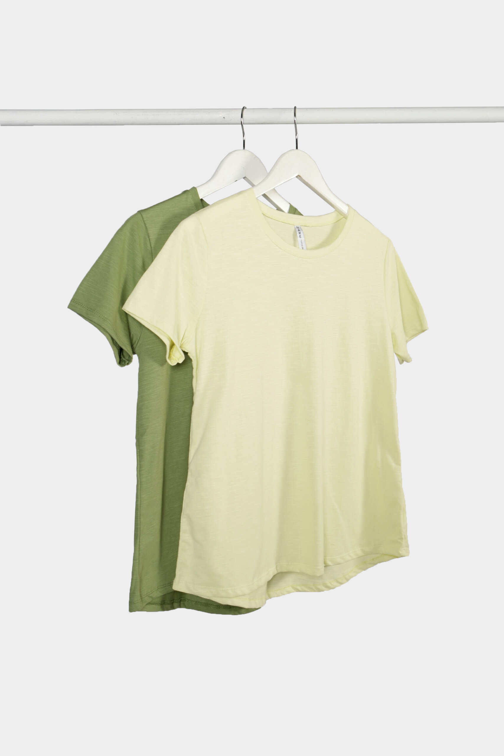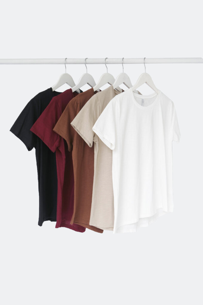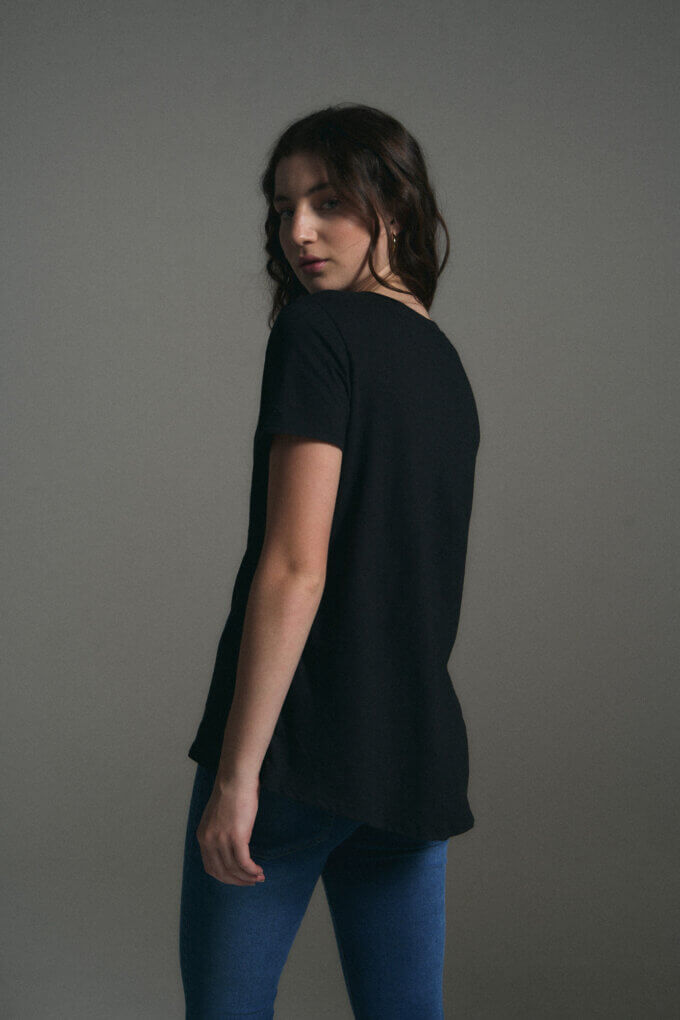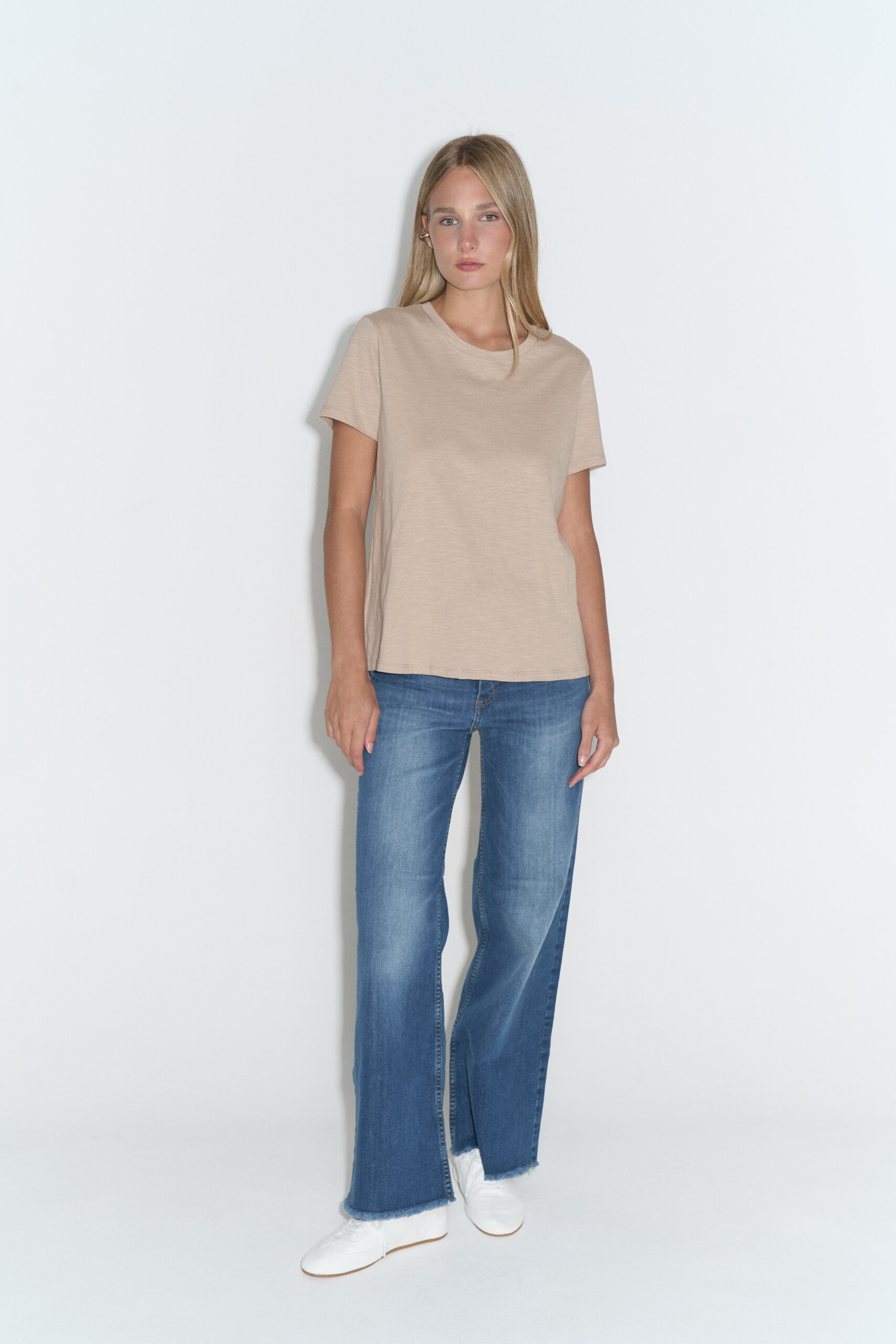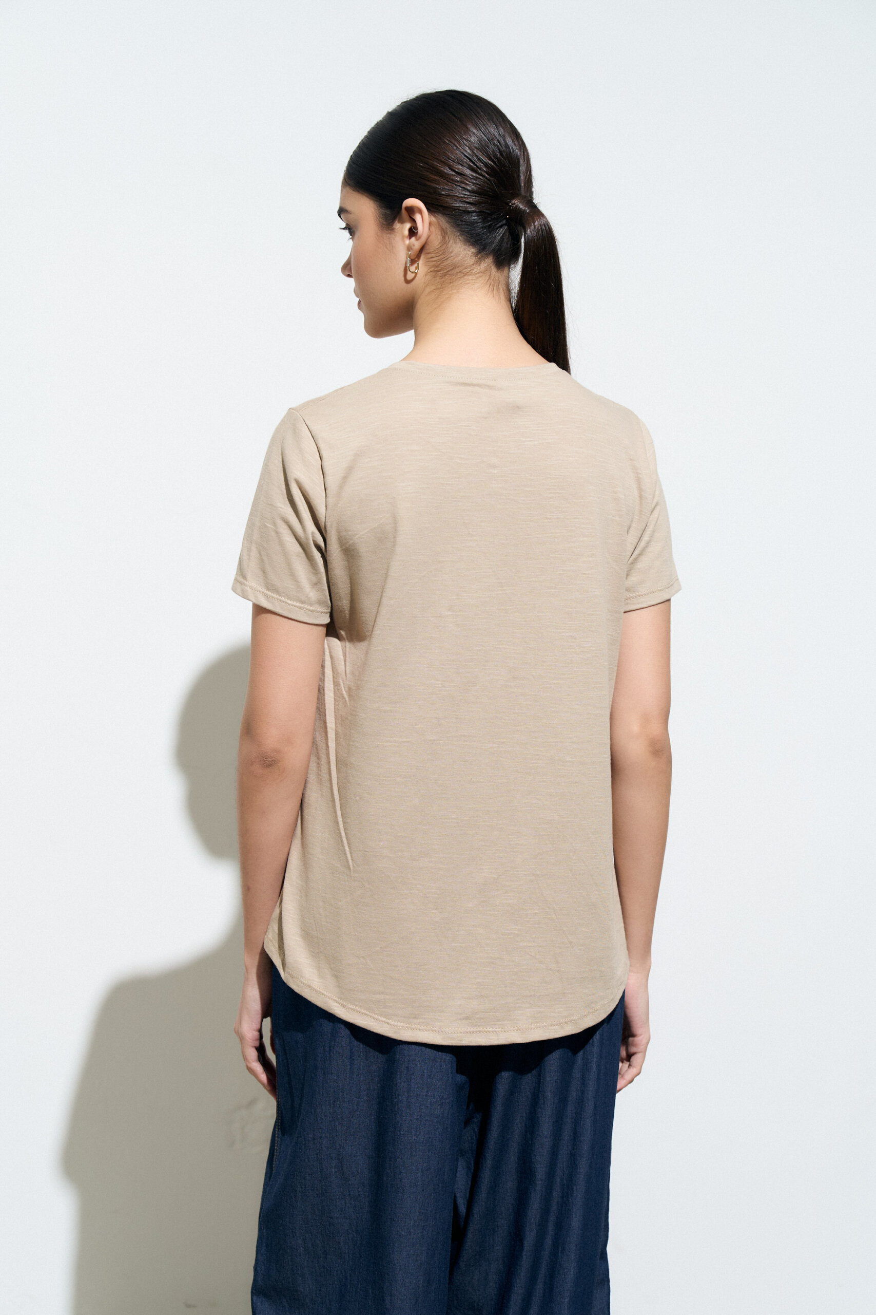 Remera básica de jersey flamé con escote redondo y mangas cortas.