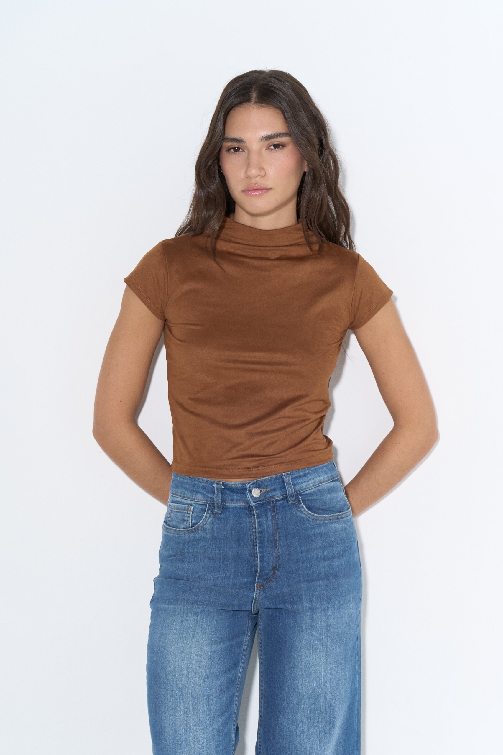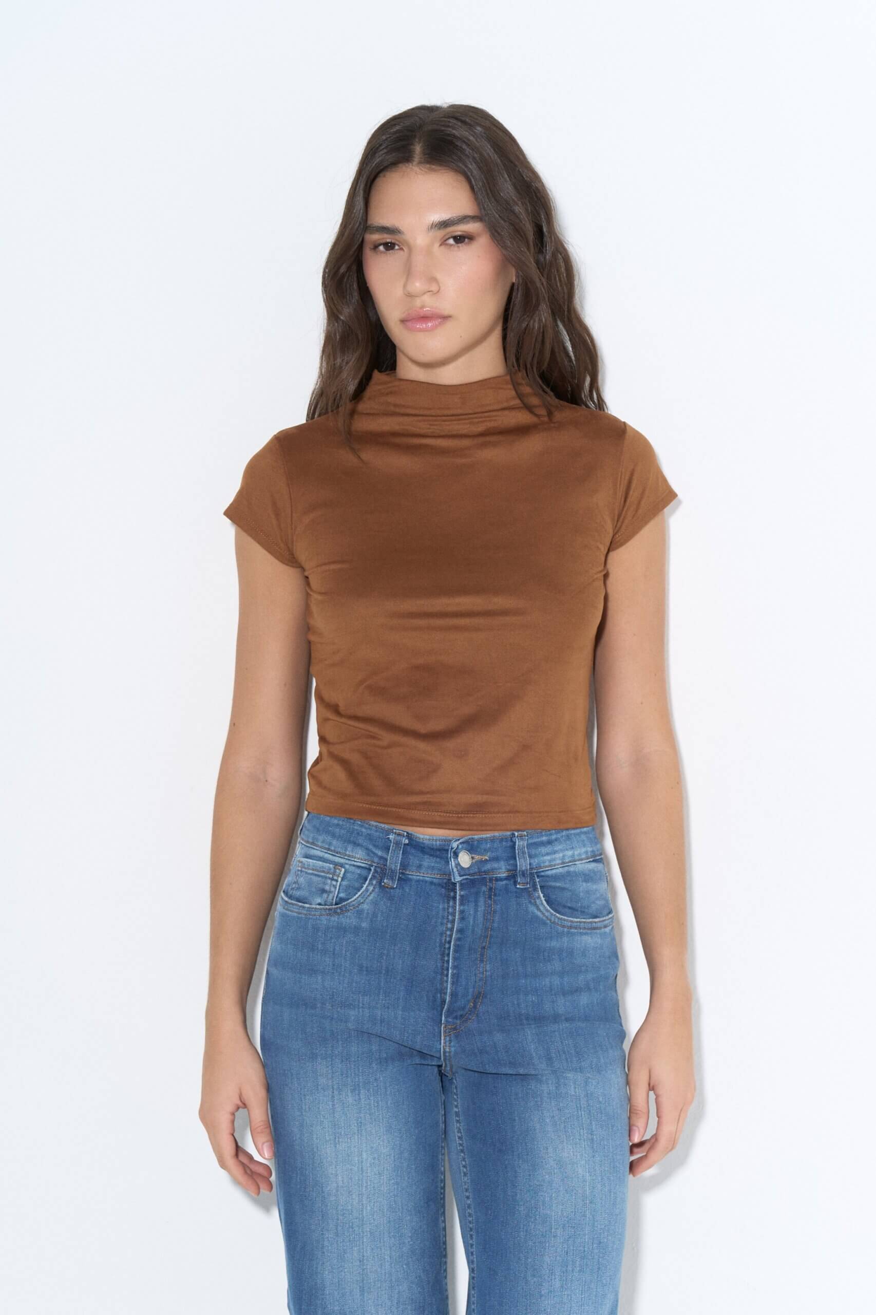 Media polera manga corta de gamuza elastizada.