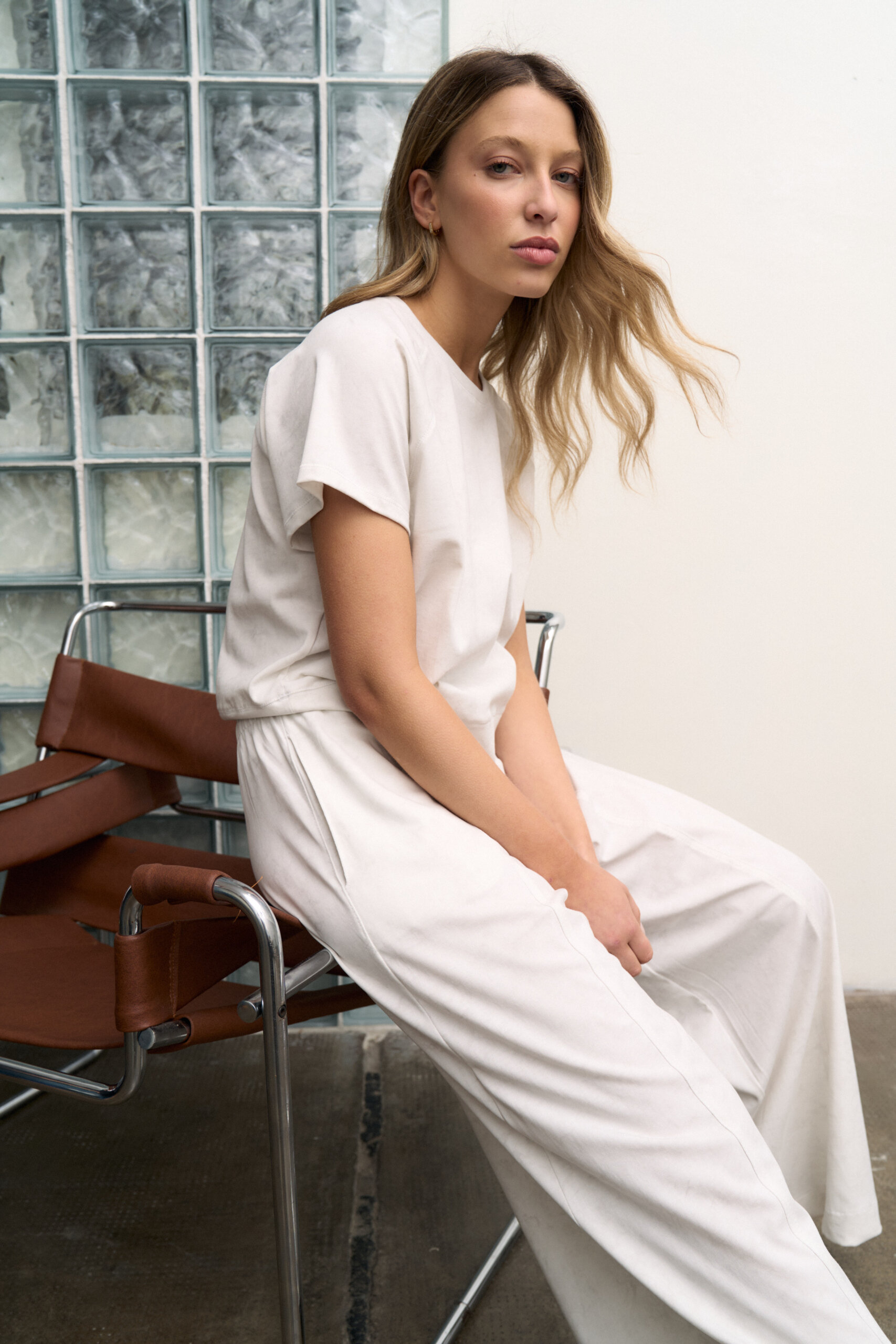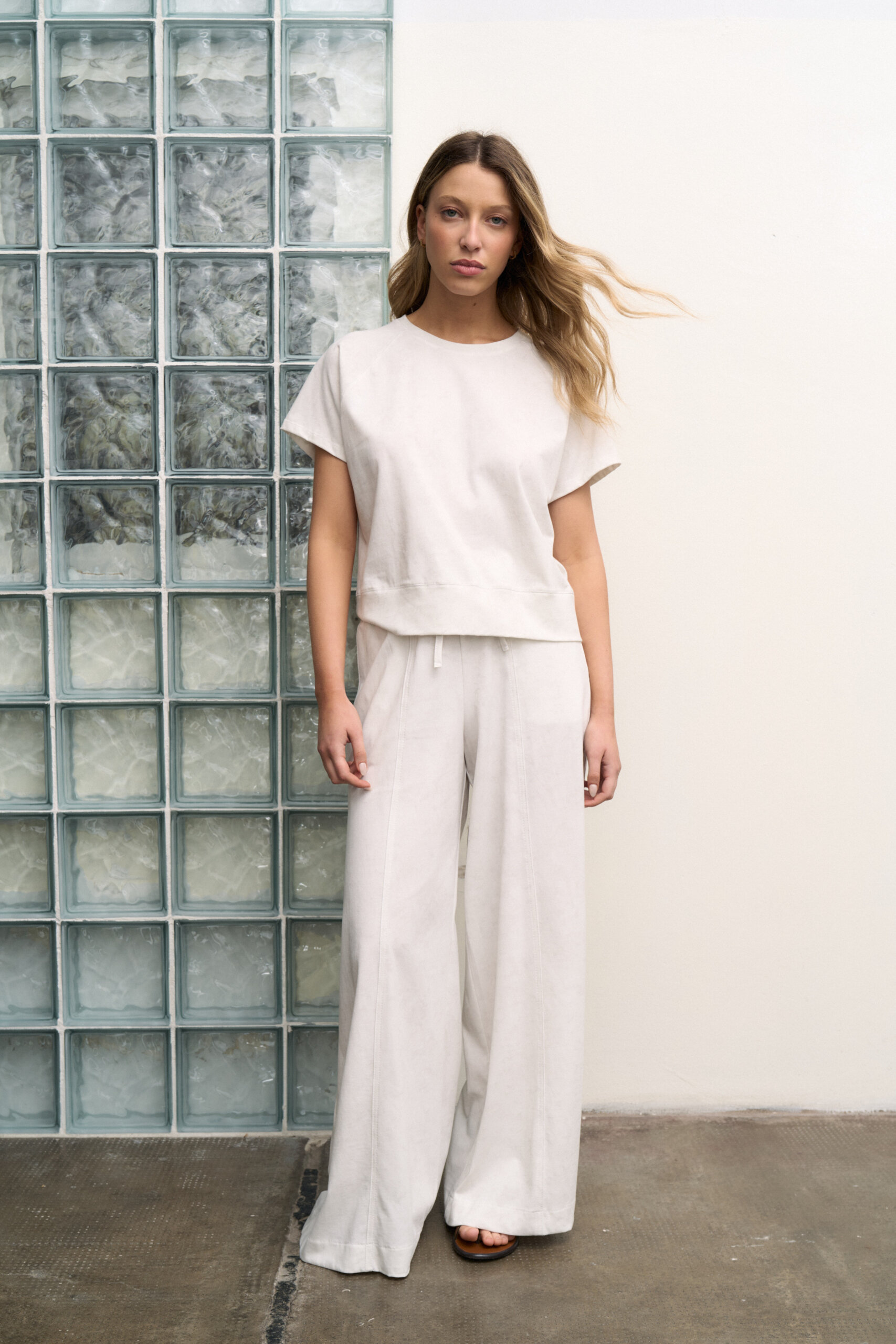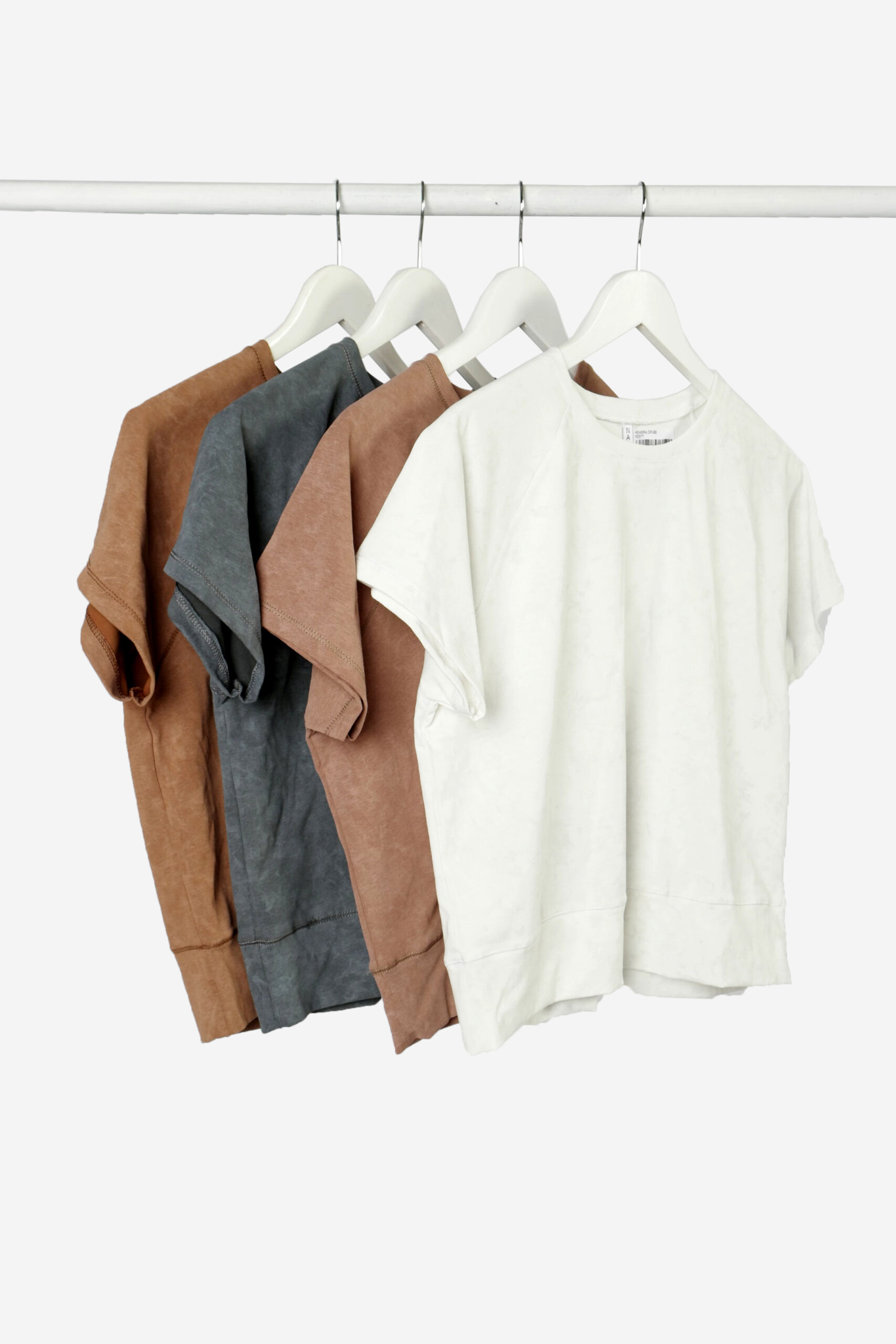 Remera de jersey efecto vintage con escote redondo, manga ranglan con puño ancho y bordado en costuras.