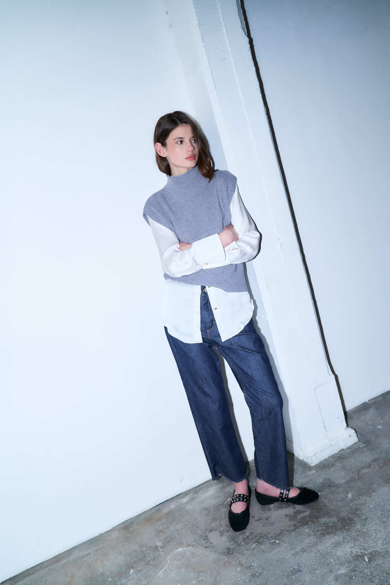 Straight leg elastizado tiro medio, 5 bolsillos con ruedo al corte.