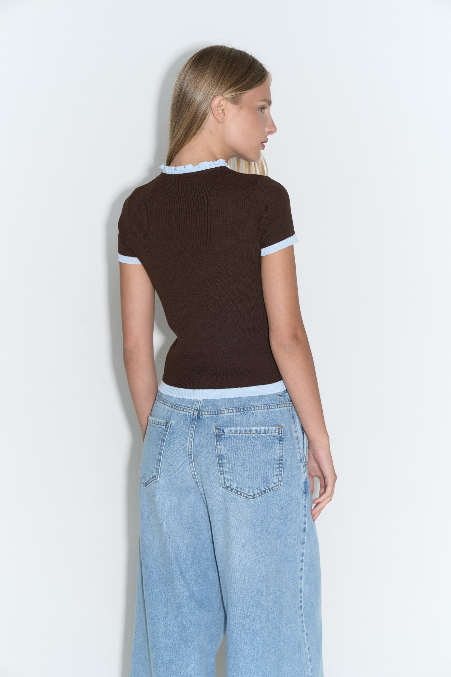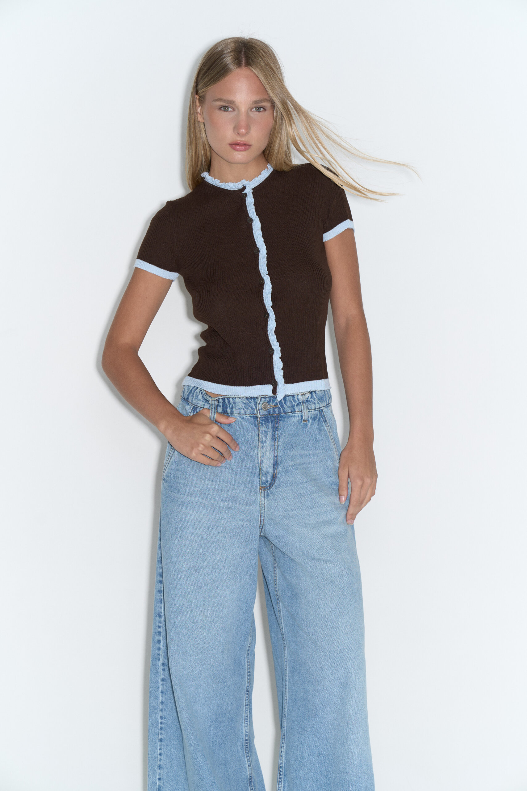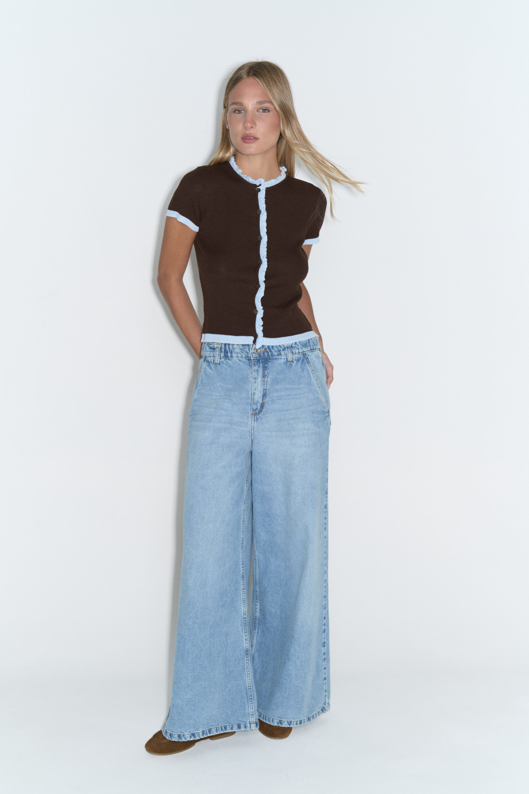 Wide leg elastizado tiro medio 5 bolsillos con ruedo al corte
