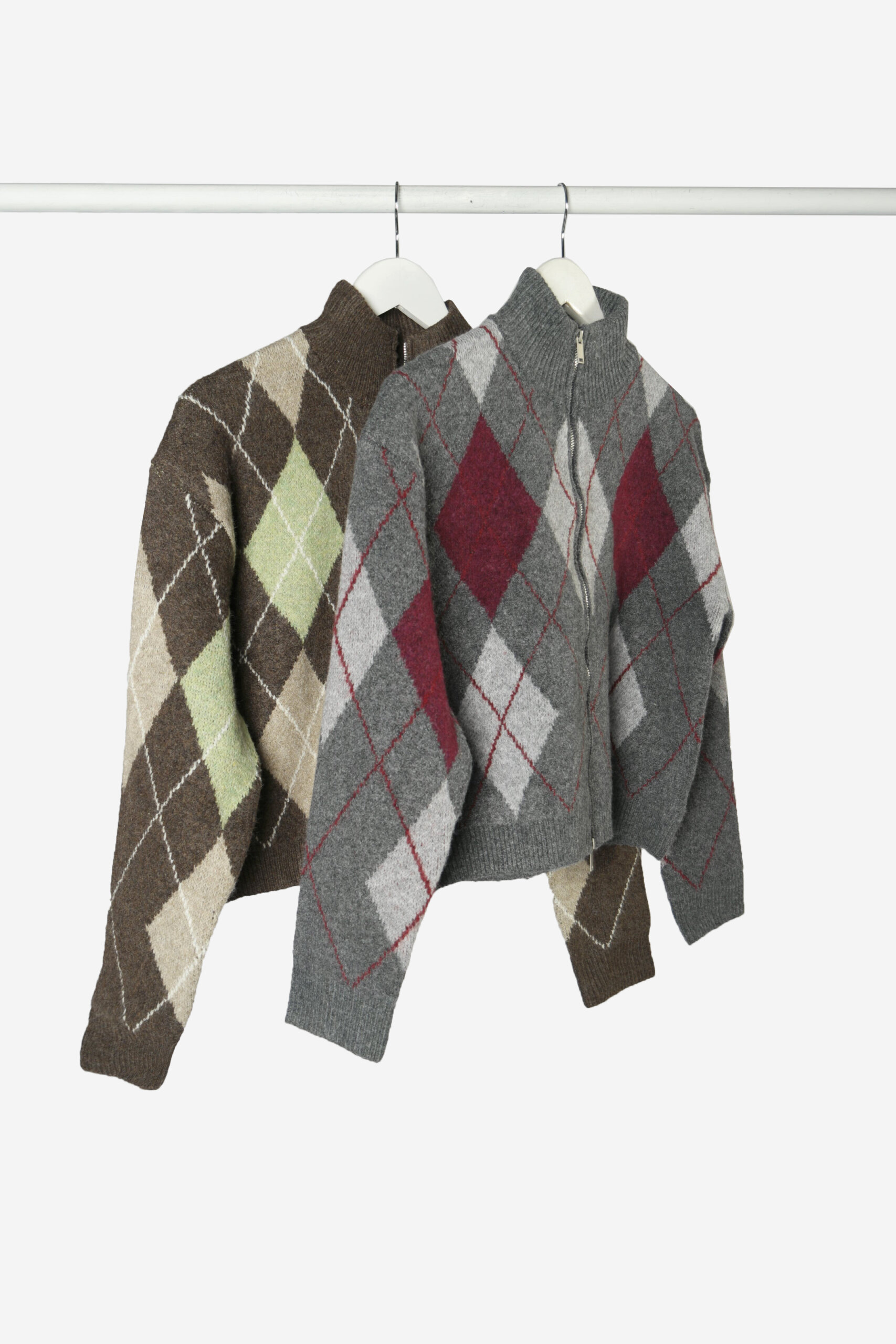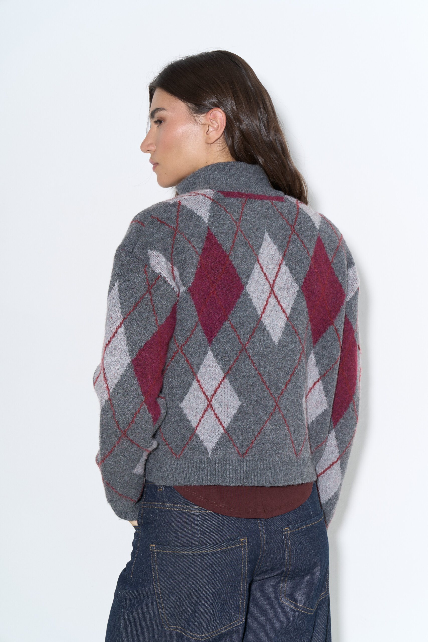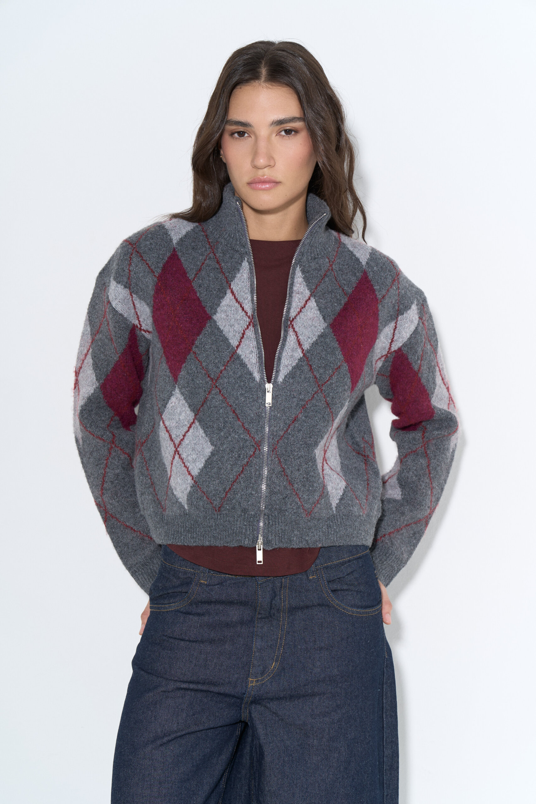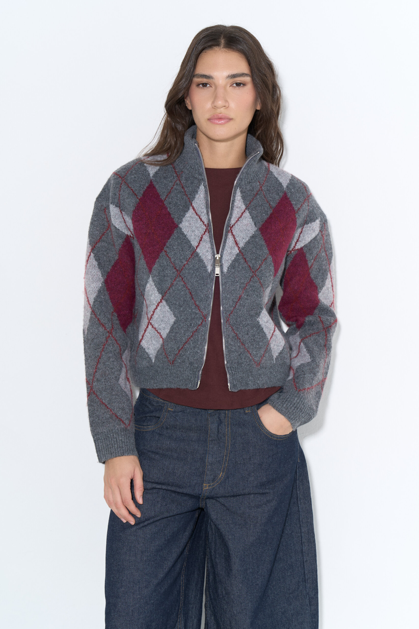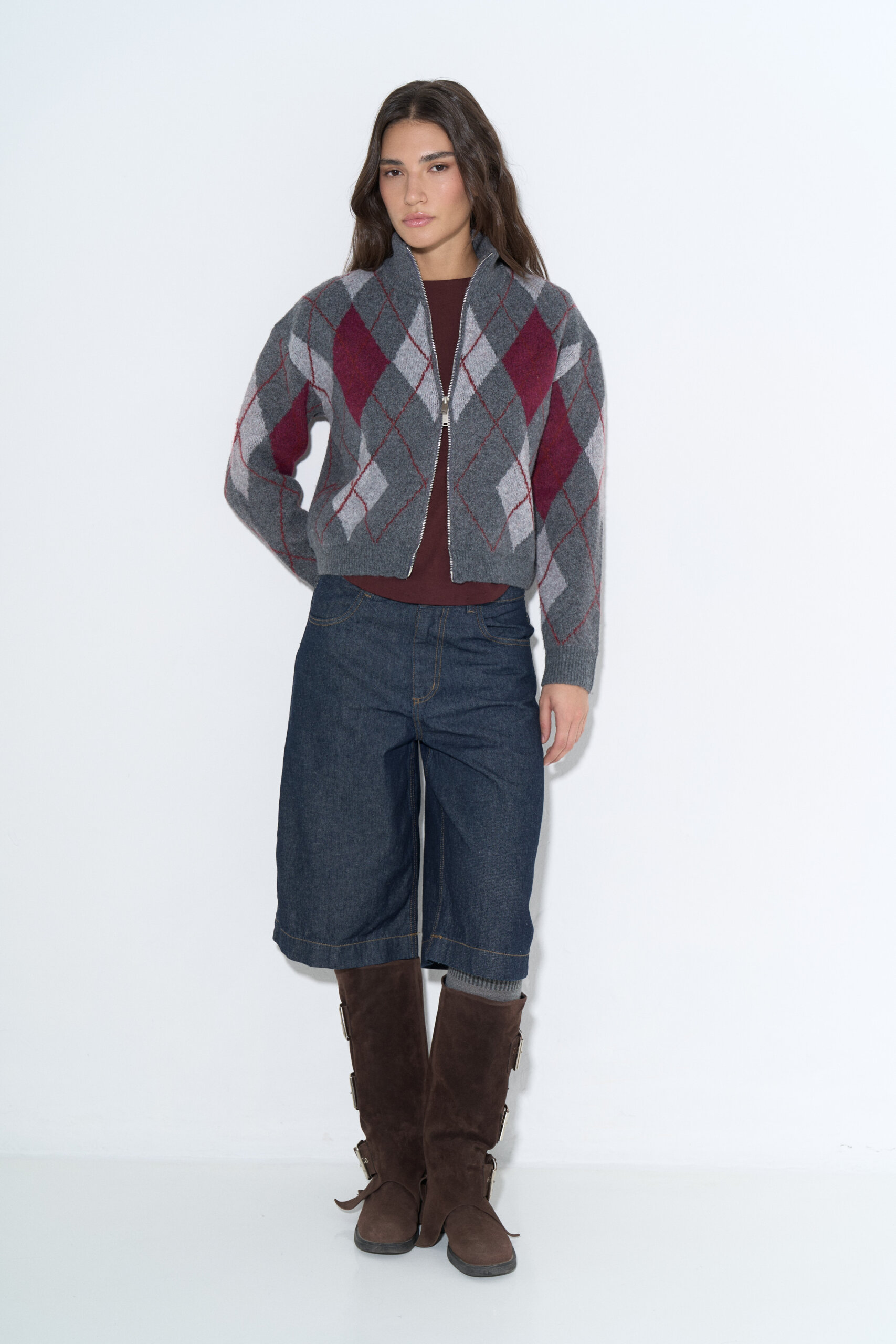 Chaqueta tejida cuello alto con cierre metálico doble tiracierre de simil mohair