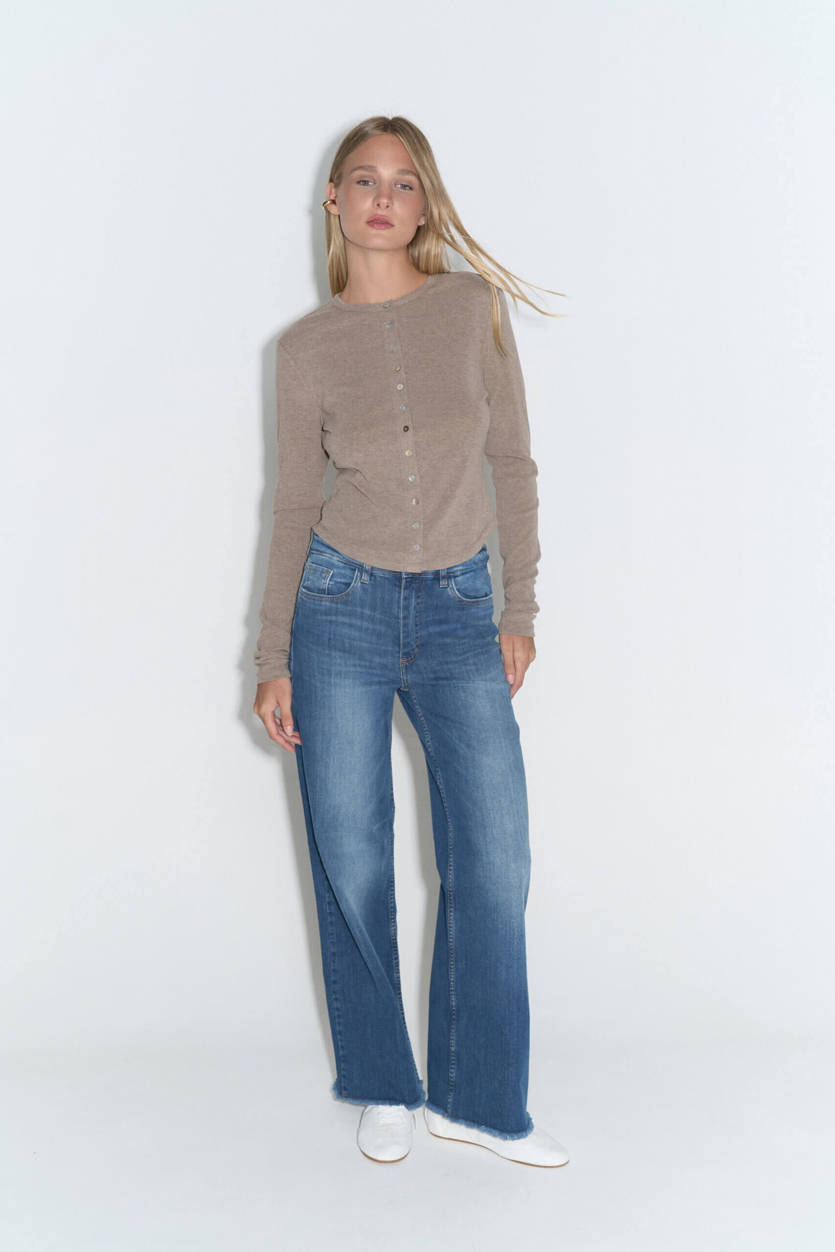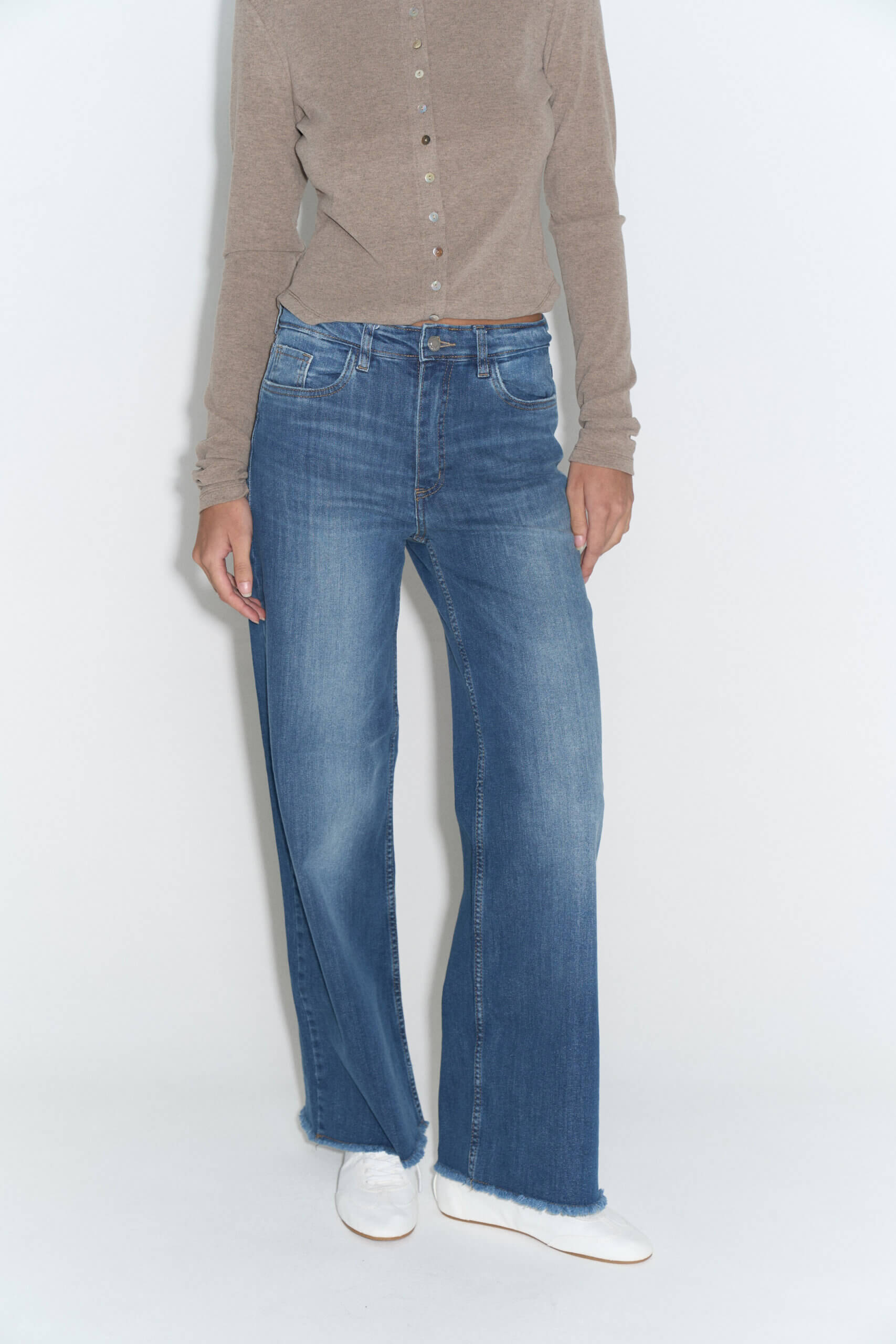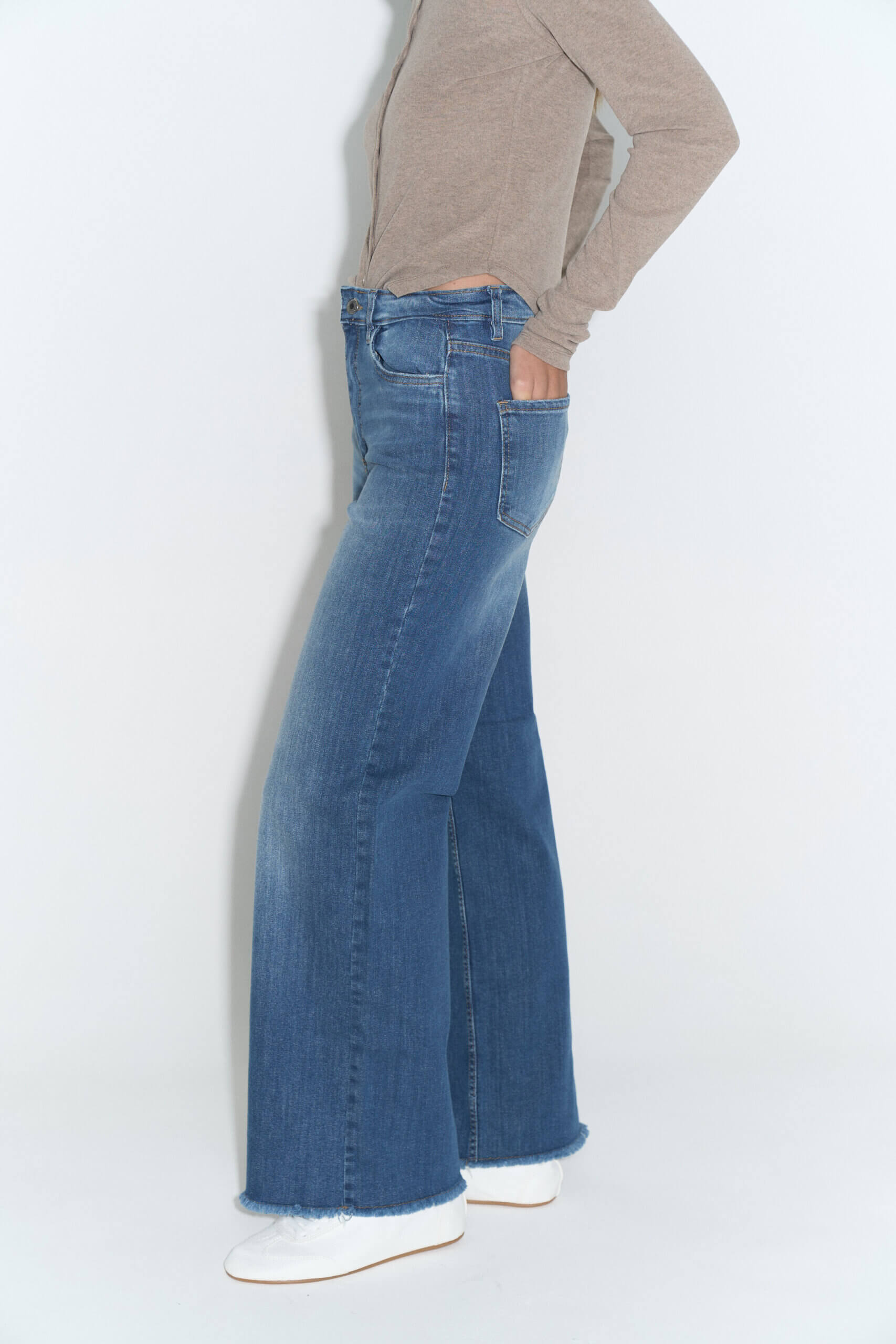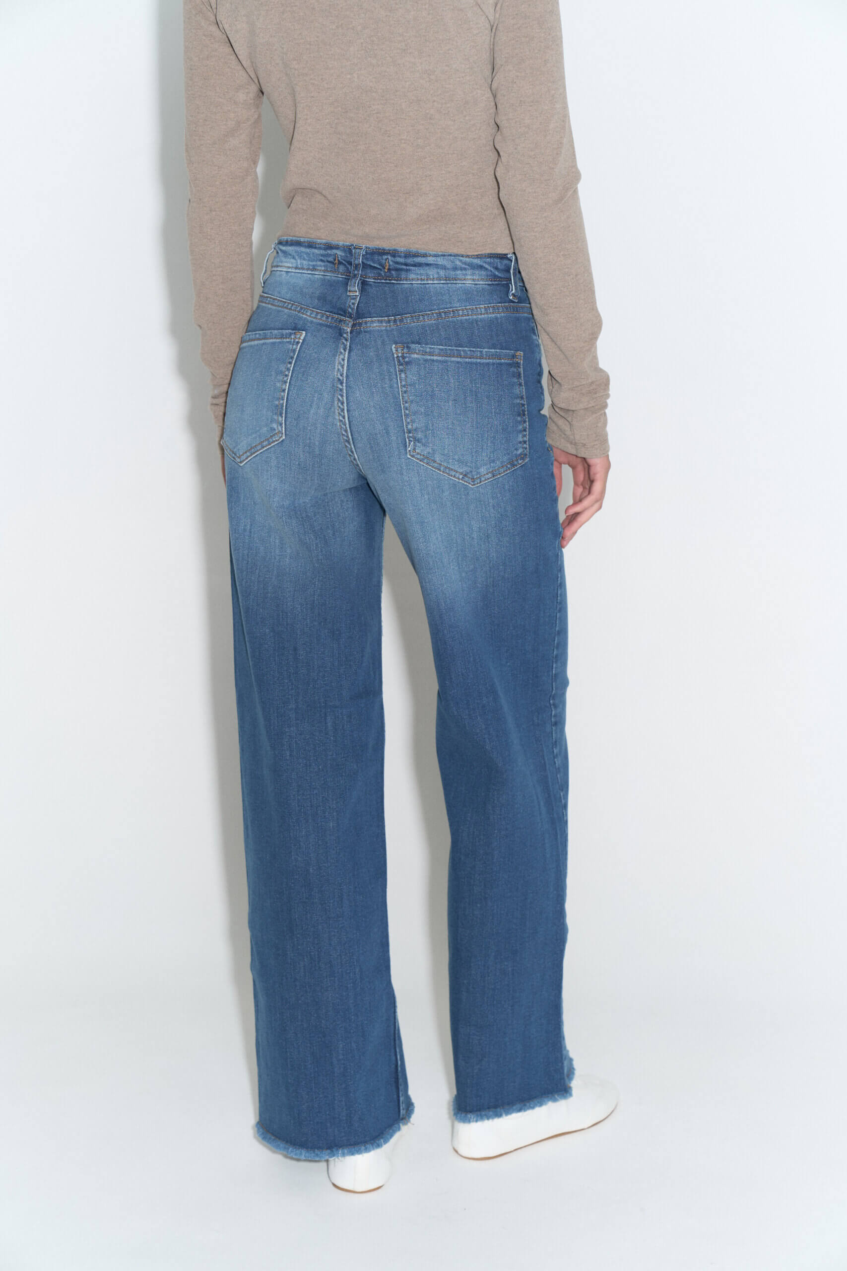 Wide leg elastizado 5 bolsillos tiro medio, con ruedo al corte.